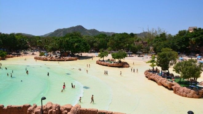 В самом Йоханнесбурге мы так и не побывали, только наслушались разных историй, о том, что в этом городе, как и в Дурбане, белым туристам стоит быть максимально осторожными. Чего вообще нельзя было сказать о месте, куда мы направлялись. Сан-Сити считался центром туристического паломничества для состоятельных гринго и прочих белых (так говорят сами африканцы). Построенный в 70-х годах прошлого века местным финансовым магнатом, этот атолл в океане апартеида казался настоящим раем для утомленных солнцем белокожих африканцев. Уже тогда этот город можно было сравнить с Лас-Вегасом, только в национальном стиле, потому что жизнь там так же бурлит 24/7, процветает игорный бизнес, есть возможность пожить в дорогих апартаментах и отведать лучшую местную еду или любую другую кухню мира. А еще здесь есть куча других развлечений, ну и, конечно же, сафари – мы ведь в Африке! Только ценовой диапазон этих развлечений довольно завышен, и, к слову, разнообразие животных на сафари не велико.