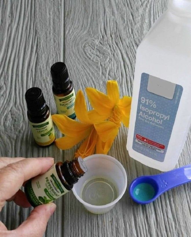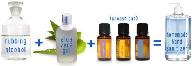 Смешайте три части спирта, одну часть геля алоэ вера и несколько капель любимого ароматического масла. Получившаяся смесь отлично дезинфицирует руки.