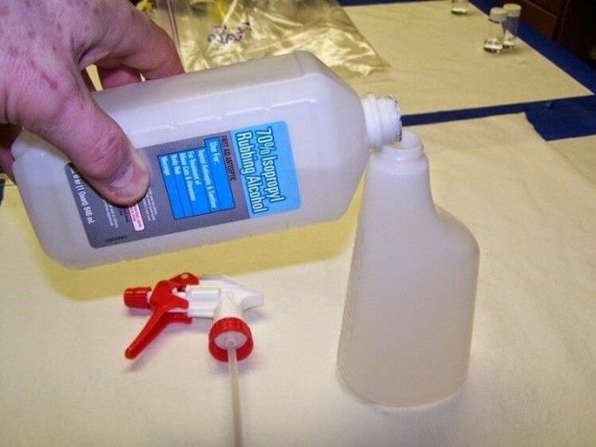 Не можете удалить с вещи клейкую этикетку или ценник? Вымачивайте поверхность в спирте несколько минут, и клейкий ярлык легко отойдет.
