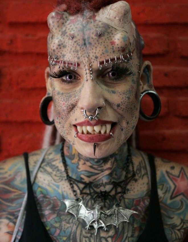 Женщина-вампир. Мария Хосе Кристерна – мать четырех детей, мастер татуажа и бывший помощник судьи. 90% тела Марии покрыто татуировками. Помимо этого у нее есть пирсинг, подкожные имплантаты и зубы странной формы, из-за чего ее иногда называют женщиной-вампиром. Ее внешность поражает даже бывалых тату-мастеров. Она довольно знаменита и часто появляется на телевидении.