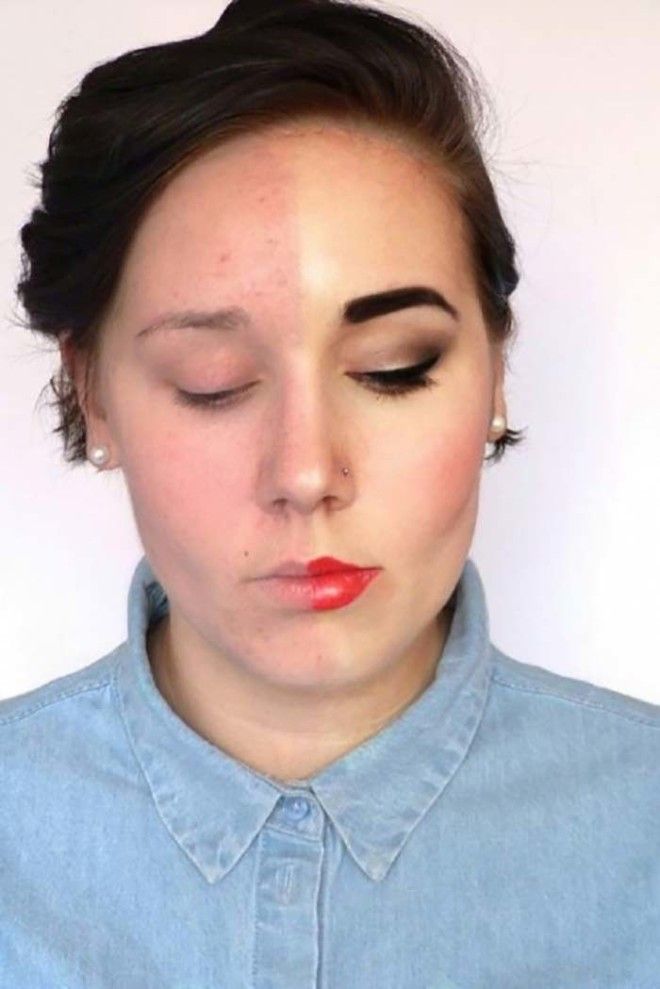 Да и как устоять против соблазна, когда косметика обещает исправить все изъяны. Эти женщины решились показать, на что способна сила макияжа, и оставили половину лица ненакрашеной.