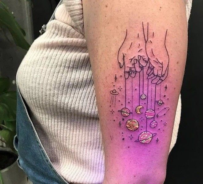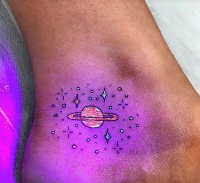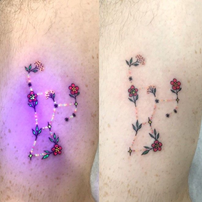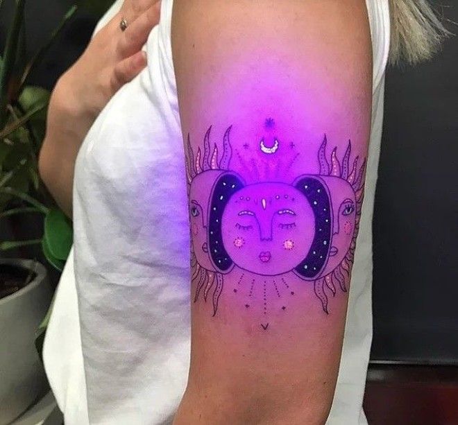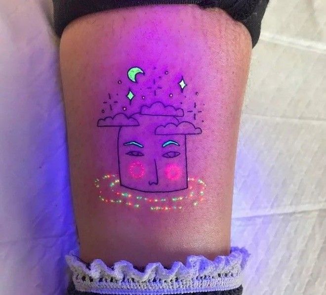 2. Ультрафиолетовые татуировки (также известные как татуировки черного цвета) сделаны с помощью чернил, которые светятся под ультрафиолетовым светом.