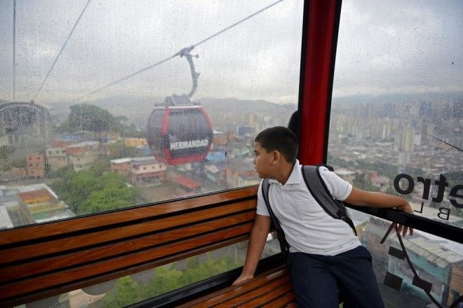 13. 8-летний Леобардо Медина на пути в школу в Каракасе, Венесуэла, 20 июня 2013 года.