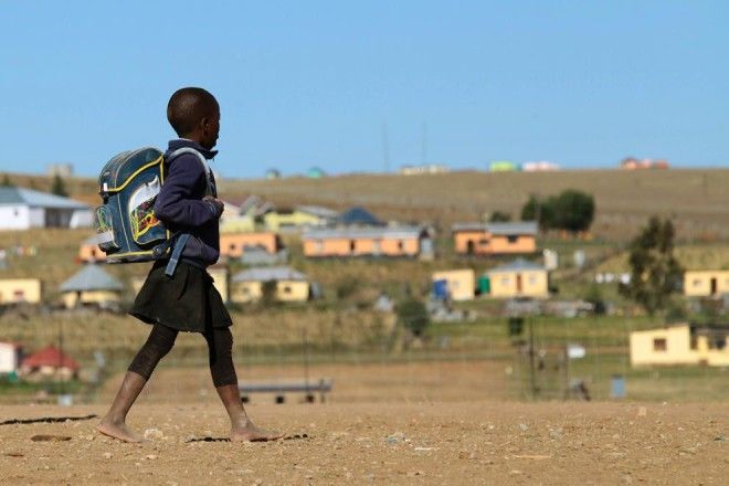 18. Ребенок идет в школу в деревне Куну, неподалеку от города Уитата в Восточной Капской провинции, где вырос бывший президент ЮАР Нельсон Мандела, 11 июня года.