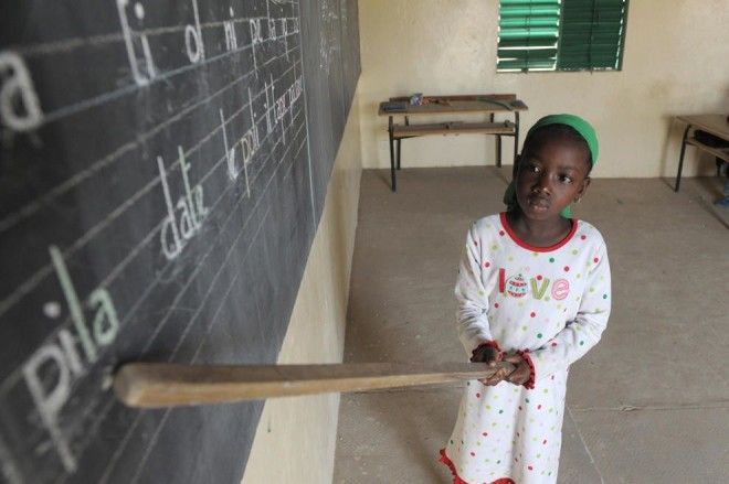24. 7-летняя Ндейе Фату Ндиайе посещает занятие во франко-арабской школе в Диагнеле, 14 км к югу от Каолака, центральный Сенегал, 10 июня 2013 года.