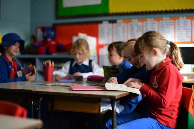 29. 6-летняя Фрэнсис МакМиллан (справа) на уроке вместе со своими одноклассниками в школе в пригороде Сиднея Куги, 17 июня 2013 года.