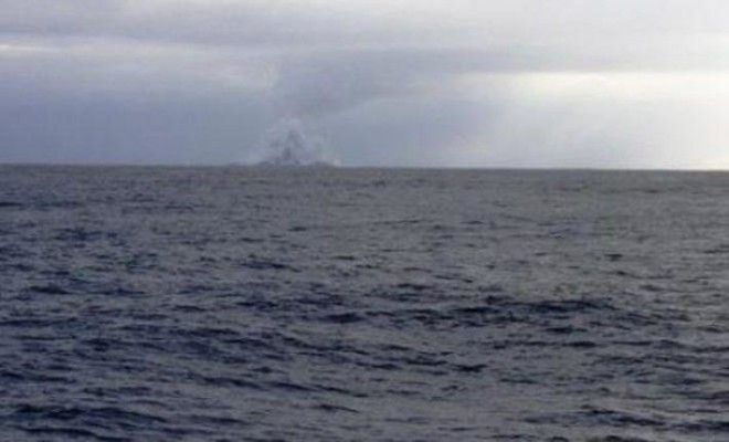 По данному звуку и бурлению воды стало ясно, что в подводных глубинах извергается вулкан.