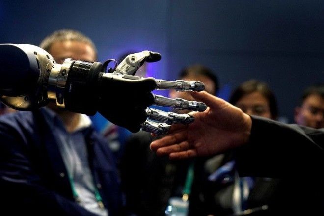 13. Человек собирается пожать руку с помощью протеза