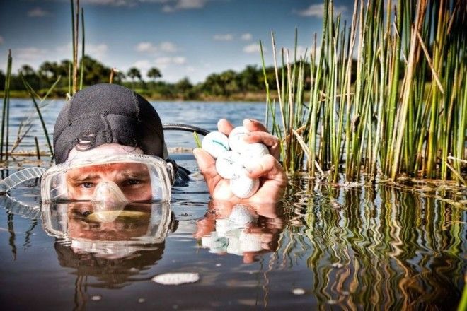 Площадки для истинно джентльменской игры зачастую соседствуют с речками, озерами и прочими красотами. И туда так любят отправлять мячи неопытные игроки. Элитные гольф-клубы могут позволить себе специально обученного ныряльщика с зарплатой около 100 000 долларов в год. Но работа не для робких: зафиксировано как минимум два случая гибели гольфоводолазов во время исполнения служебных обязанностей.