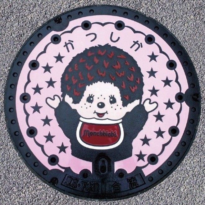 Персонаж Monchhichi стал любимцем множества людей во всём мире. Его создатель, компания Sekiguchi, расположена в токийском районе Кацусика. Кацусика стала настоящей Меккой для поклонников персонажа – здесь есть парк Monchhichi и автобус с его изображением. Дизайнерские крышки начали устанавливать в 2017 году в окрестностях станции Синкойва, в настоящее время их количество достигает десятка