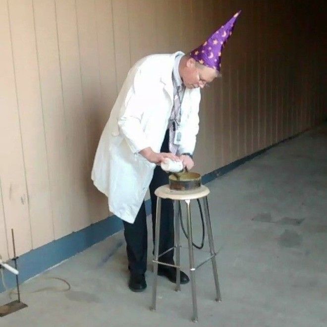 10. «Мой преподаватель сказал, что, если весь класс получит пятерки за тест, он придет в костюме Скуби-Ду и принесет детское шампанское. Мы постарались, а он сдержал слово». (© thechive)