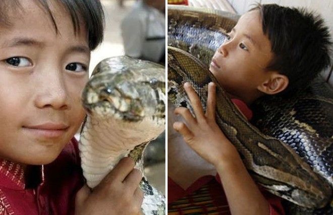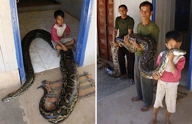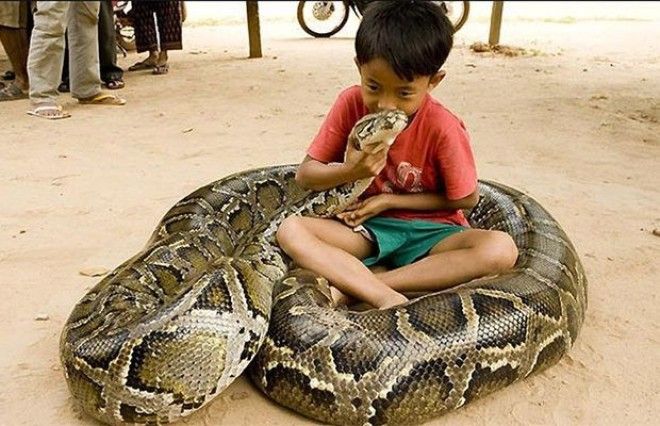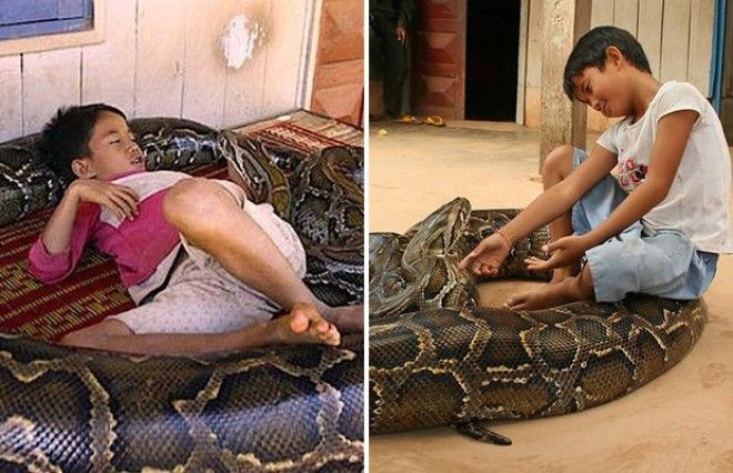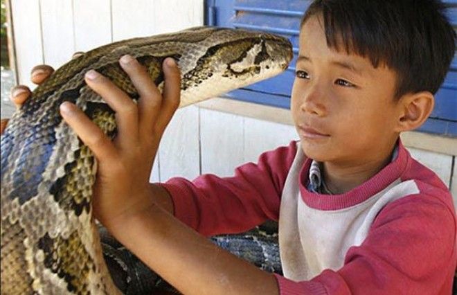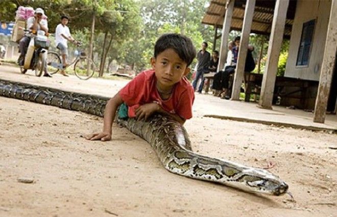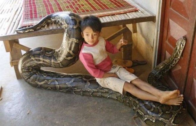 Сын хозяина Уорн Самбат (Uorn Sambath), на тот момент ему было всего 3 года, очень сдружился с питоном по кличке Чамреун (Chamroeun).