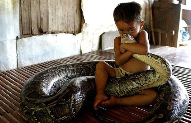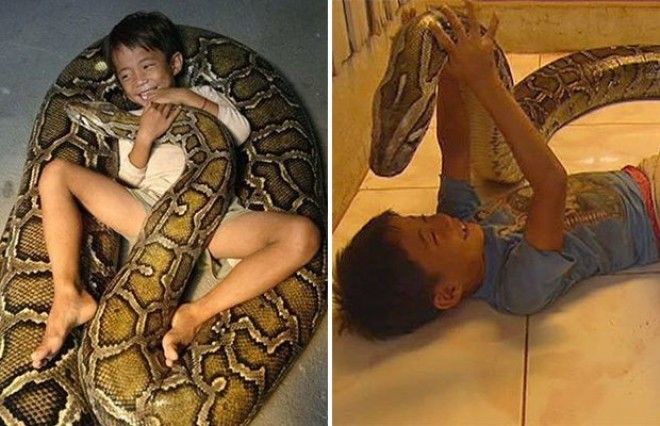 Он лазал по нему туда-сюда, спал на нем, таскал за хвост. За все это время змея ни разу не причинила вреда мальчику.