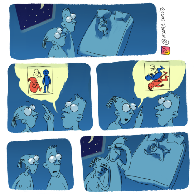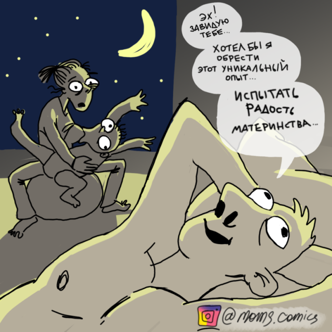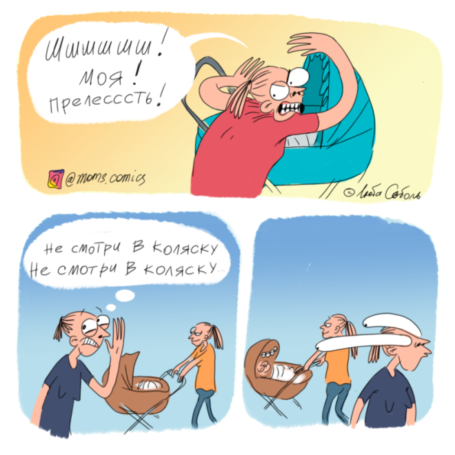 В этом комиксе себя точно узнаю мамы, которые верят в приметы. Ну и, конечно, их любопытные друзья. «Ну дай взглянуть, хоть одним глазком, ничего не будет»…