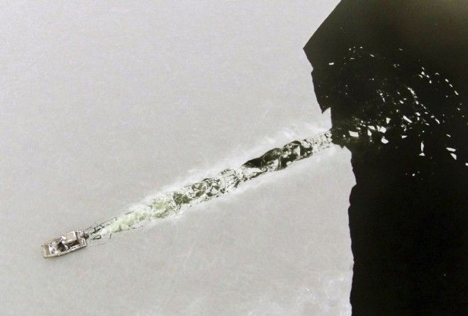 92. Лодка прорезает свежий слой льда в бухте Марион (© Peter Pereira)