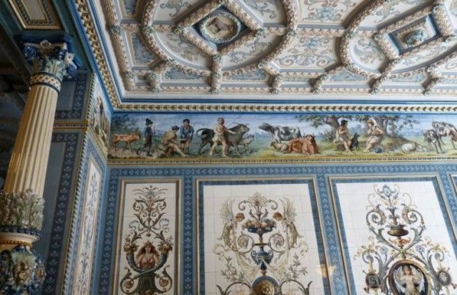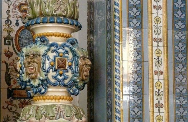Стены, пол, потолок облицованы узорной плиткой, изготовленной фирмой Villeroy & Boch совместно с дрезденскими художниками.