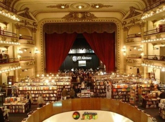 Новый магазин получил имя Libreria El Ateneo. В нем бережно сохраняют интерьер театра: скульптуры вдоль стен, бархат на стенах, роспись сводчатого потолка – все остается в первозданном виде. Торговыми залами стали ложи, балконы и, конечно, партер. На сцене расположилось кафе.