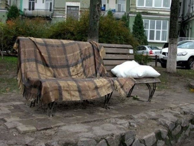 Скамейки люди любят по всему миру, ведь на них можно и сидеть, и спать, а в последнее время они часто используются даже как носитель рекламы.