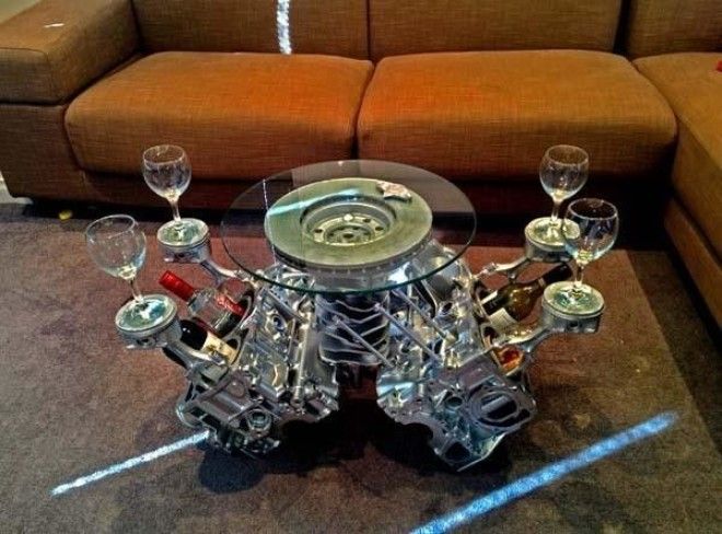 Например, этот талантливый умелец решил превратить старый двигатель автомобиля в кофейный стол.