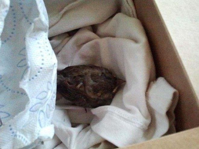 "Но он оказался живым, и мы принесли его домой и положили в коробку в нашей комнате. Мы пытались его кормить, но безуспешно. А когда он начал громко чирикать, мы вынесли коробку на балкон."