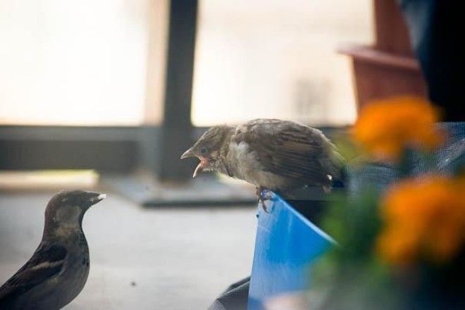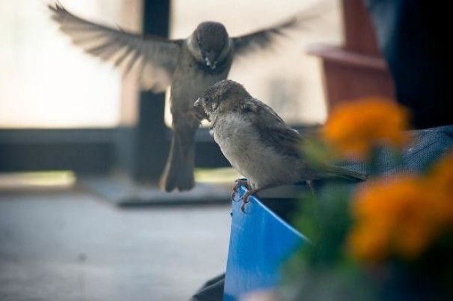 "Как же мы были приятно удивлены, когда наш воробей вернулся к нам. Мы обнаружили его на балконе спокойно спящим среди его любимых цветов."