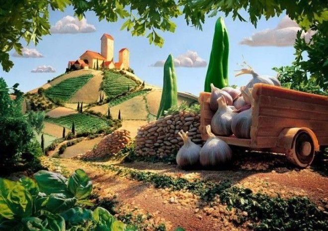 25 лет своей жизни Карл работал в рекламном бизнесе, идею создать ландшафты из еды, он обдумывал на протяжении 10 лет. Карл очень внимателен к деталям, он подолгу выбирает продукты и выставляет свет. На самом деле ландшафты снимаются на обеденном столе, но они настолько реалистичны, что вам кажется, такие пейзажи действительно где-то существуют.