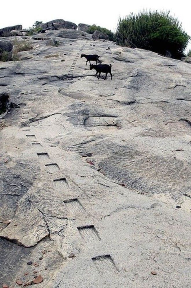 На поверхности массива имеются вот такие прямоугольные выемки в породе