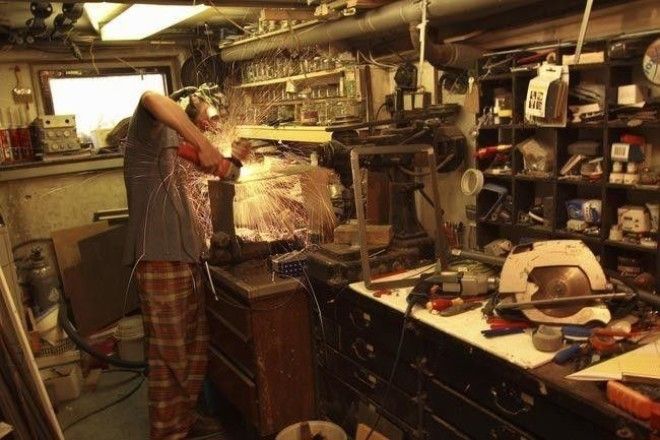 Также он повесил полки и начал обживать свой новый дом.